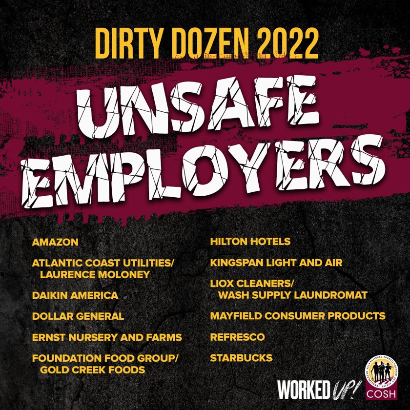 Cosh Network On Twitter We Are Grateful For The Workers Who Show Up To Fight For Better Safer Working Conditions Especially Workers From This Year S Dirty Dozen List Workedup Mayday Https T Co Vcrrtmle2d